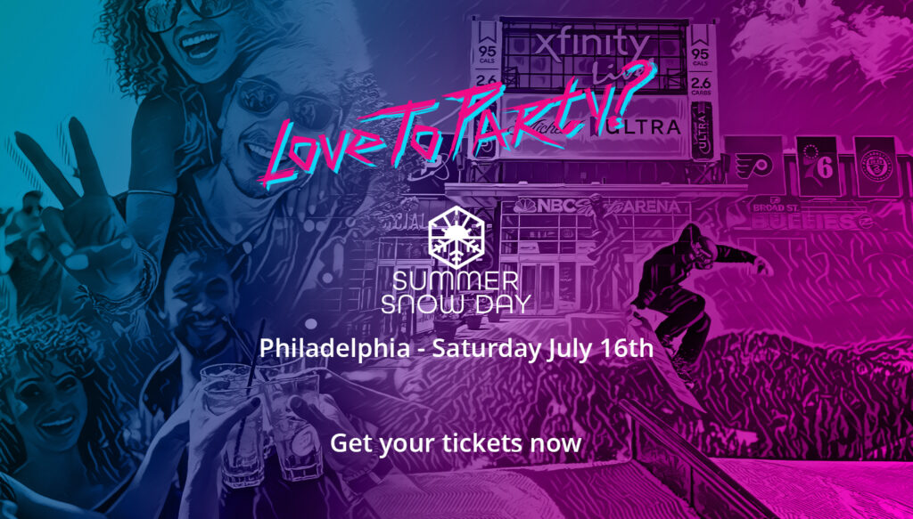 It’s snowing in South Philly this weekend! Gilson Summer Snow Day will make its first appearance in Philadelphia with a take over of Xfinity Live! on Saturday, July 16th, featuring snowboarding competitions, ice carving, ski artist showcases, apres-ski lodges, live music, 50 plus free drink samples, games, and the Knoebels Kids Zone.