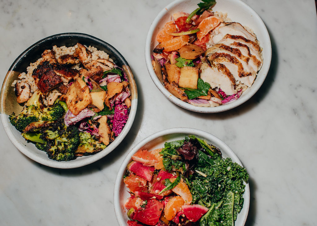 If you don’t know the Dig deal, it’s this: you build-your-own bowls of locally sourced vegetables and meats with a handful of vegan and gluten-free options. There are no microwaves to be used or freezers to be had as everything is ultra-fresh. Seasonal veggies such as charred Brussels sprouts with honey-chili oil are immensely popular, as is a new spicy citrus salad, and their classic Dig dish with charred chicken (thigh), charred broccoli with lemon, roasted sweet potatoes, brown rice with parsley, and garlic aioli dressing.