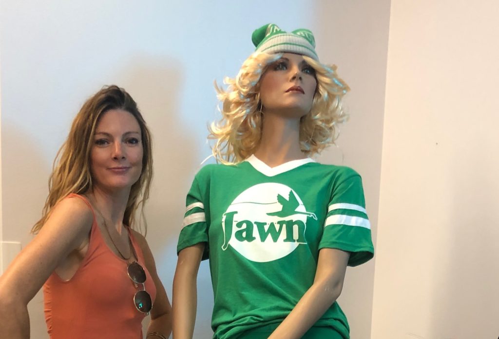 While Emmy the Mannequin may not have the flawless features, smooth surfaces and high-class style she once did in the 80s, she does have a whole new look now. Like South Fellini, she’s a little more edgy, scrappy – a little more Philly. Instead of ball gowns, bikinis and furs, she’s wearing gym shorts, a “Jawn” T shirt and a beanie. Sure, she might have some paint chipped away and minor scratches, but her hair hasn’t changed a bit. And to harken a little bit back to her true self, Trov put her in gold high heels (with socks), so we don’t forget that sassy little lady on the inside. “This one was pretty much trashed. But, we got it!” he said.