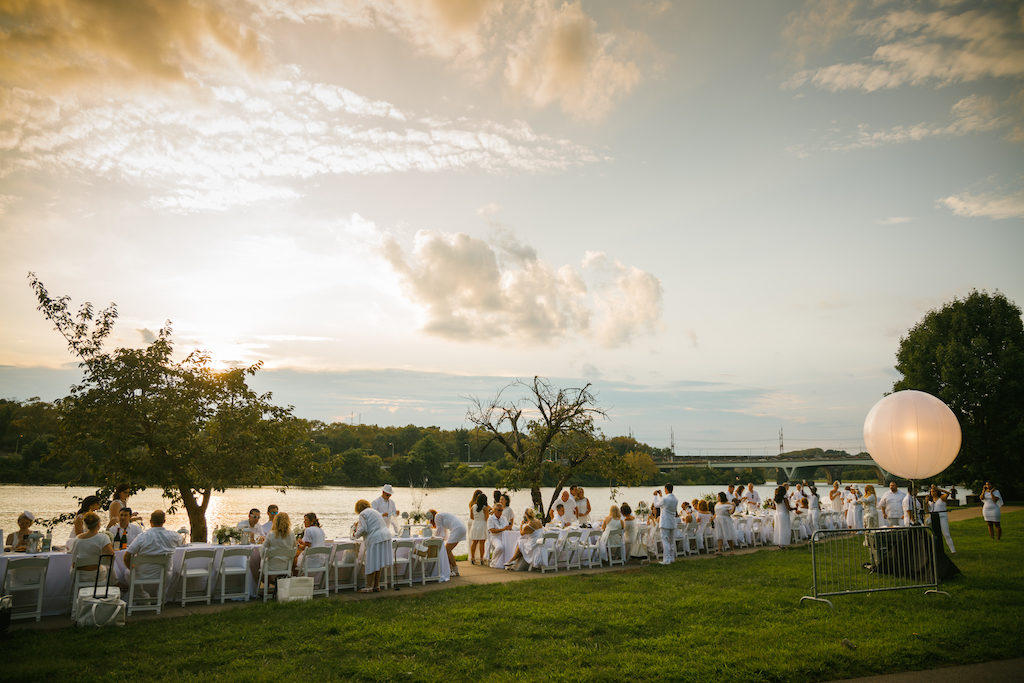 The steady stream of dazzling white-clad attendees along the Philadelphia Museum of Art, all carrying their own food, tables, chairs, and tablecloths, revealed the annual all-white pop-up dinner party, Le Dîner en Blanc, was at secret locations appointed on and beyond Boathouse Row along Kelly Drive.