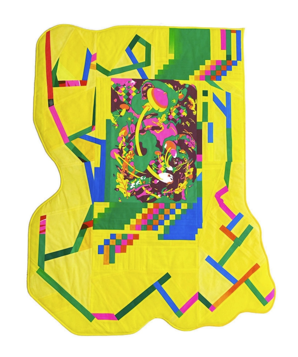 Philadelphia-based artist Katie Kaplan brings a unique perspective to the exhibition with her multidisciplinary practice encompassing screen-printing, quilting, sculpture, textiles, video, and installation. Kaplan’s works explore the natural world as a medium connecting spiritual and activist practices. Her art grapples with environmental destruction while proposing spiritual and cultural transformation solutions.