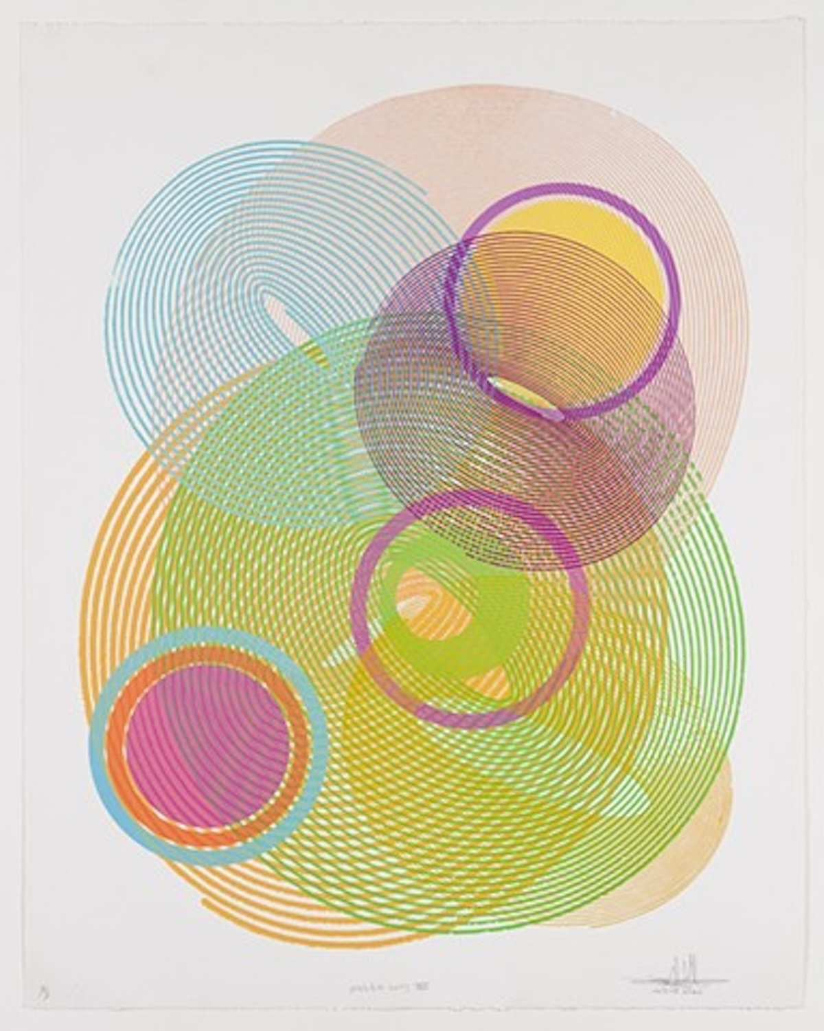Alexis Nutini’s art stands out through his innovative use of stencil and collage to stain wood panels. This Mexican-American artist’s work, inspired by his cultural heritage and personal experiences, involves meticulous layering techniques akin to silk screens or woodcuts. Nutini’s process is marked by rigorous experimentation with relief printmaking, resulting in dynamic, varnished paintings that examine personal and cultural identity.
