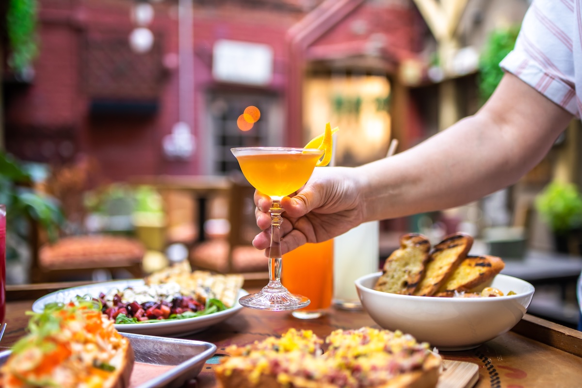The revamped Sonny’s Cocktail Joint takes inspiration from retro neighborhood bars and VFW halls, blending laid-back comfort with an elevated cocktail program. The design is an eclectic mix of checkered floors, vinyl, vintage beer art, textured glass, and a jukebox, evoking a warm, throwback aesthetic. The cozy backyard patio, adorned with mix-and-match seating, curated vintage finds, and living plants, offers a hidden escape for guests to relax and unwind.