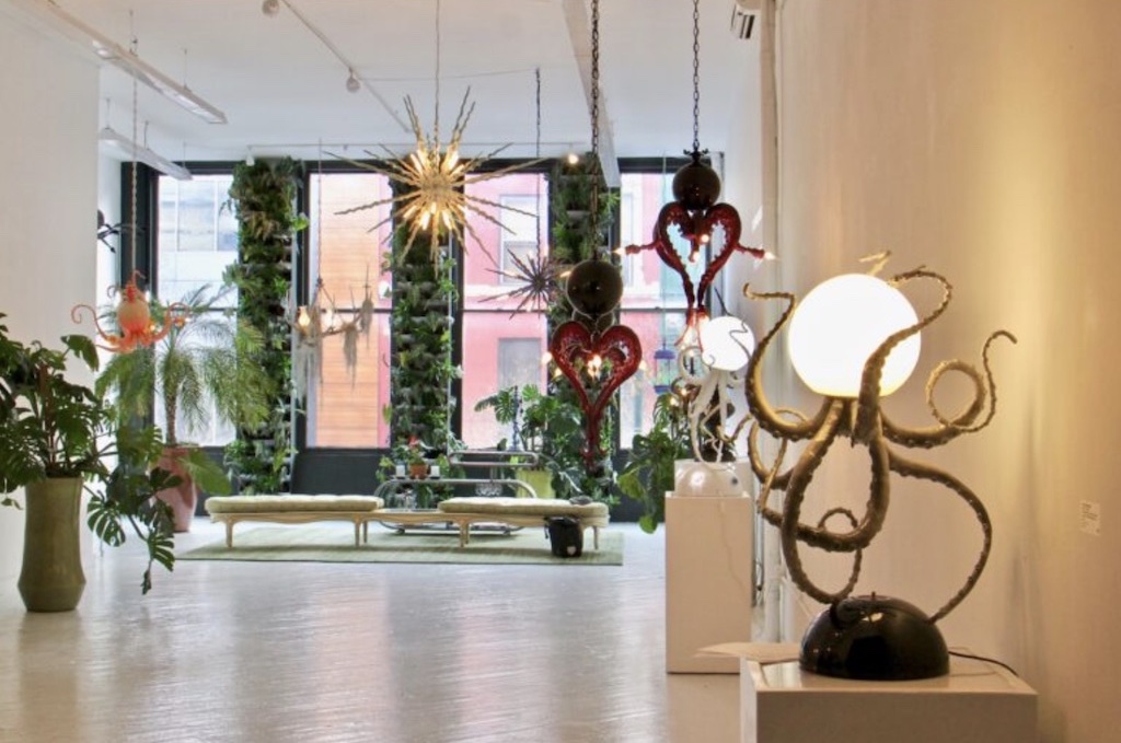 While I will have more on this blessed event as it unfolds, you still have several days left to spy one-time, long-time, all-time Space 1026 artist, photographer and chandelier maker Adam Wallacavage’s AFTER FOREVER. A solo exhibition of surreal sculptures by the scion of South Broad Street and the darling of the New York Times’ Design section. Curated by James Oliver, the AFTER FOREVER exhibition at HOT•BED (on the 2nd floor of 723 Chestnut Street) present “sculptures in an immersive fantastical environment from two ongoing series, Octopus Chandeliers and Kitsch Collaborations, And uncovers the intricacies of Wallacavage’s practice and gives a closer look into the artist’s unrestrained techniques.”