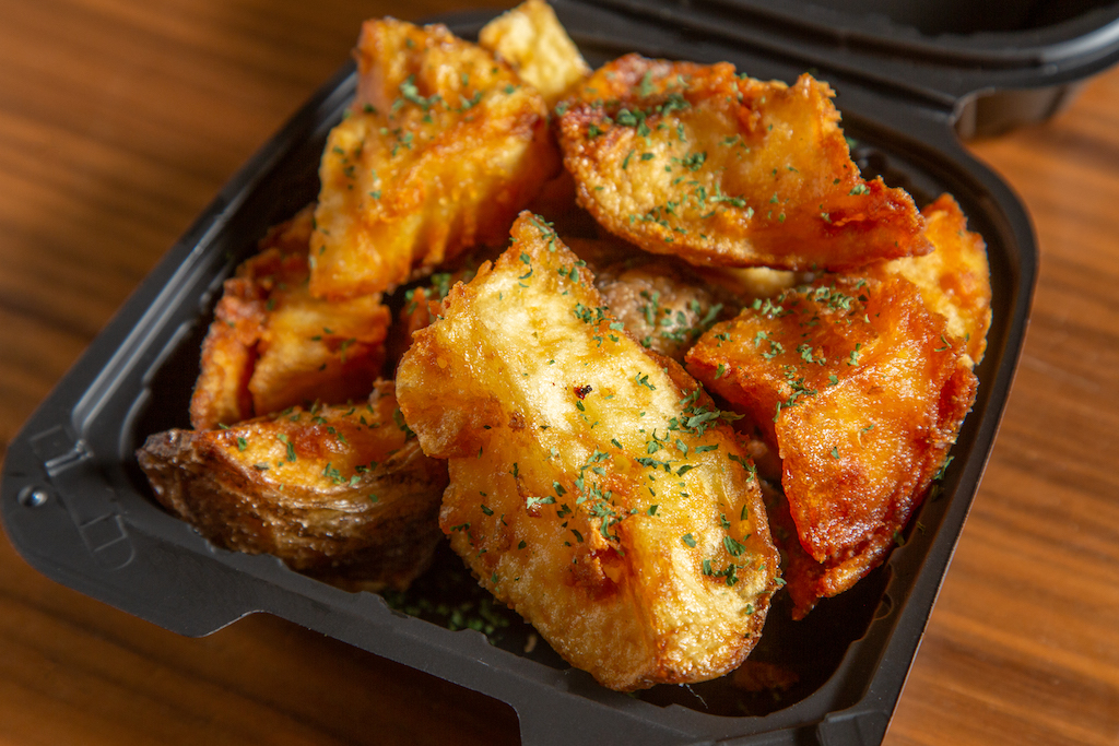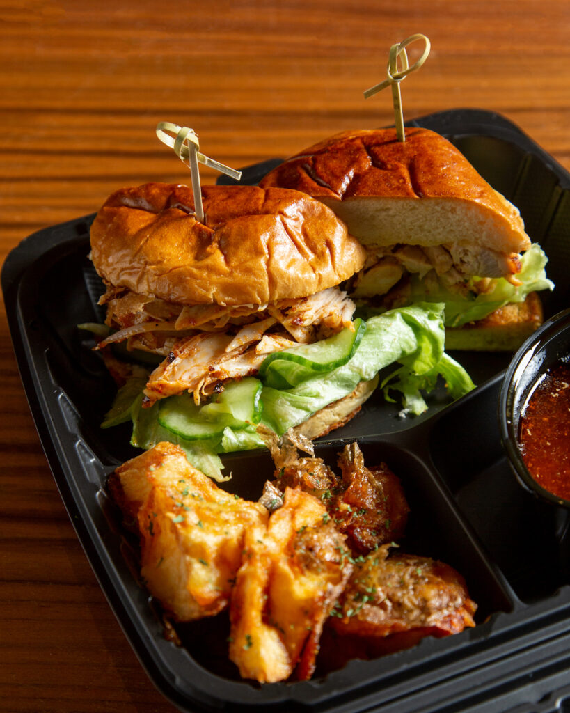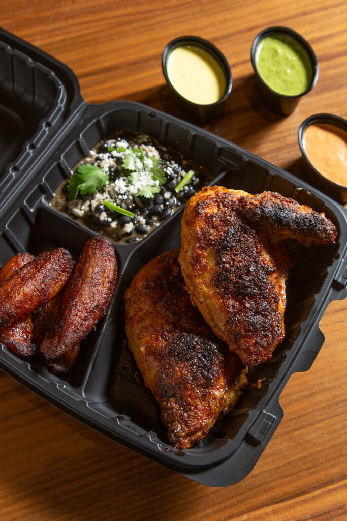 Chef Serpico created a to-go experience to-die-for. With Chicken Scratch’s generous helpings of crackling skin chicken, in various sizes. Along with tasty, large scale sides such as sweet fried plantains. Mom’s Mac n’ Cheese. My mom never thought of adding béchamel and smoked paprika. Crispy Potatoes and garlic-y potato rolls. What makes the meal, beyond how zesty and juicy the chicken was, is Serpico’s three signature “stoplight” sauces.