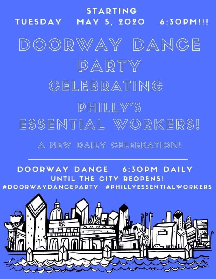 The group is encouraging all city officials, sports and entertainment celebrities, neighborhood blocks, hospital workers, and all local citizens of every race, background and religion to join in, and even create their own “Doorway Dance Mix” that includes the two songs. A Zoom party will admit 100 participants. Meanwhile, organizers urge participants to post their “Doorway Dance” moves on TikTok and other social media platforms. Hashtags can include #DoorwayDanceParty and #PhillyEssentialWorkers.