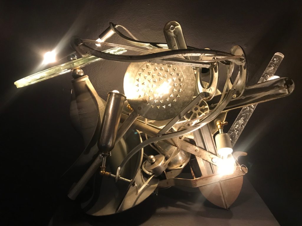 As I moved from one sculpture to the next, pausing to study pieces that incorporated bicycle parts, taillights, bedsprings, depression glass, chandelier crystals, musical instruments, and even a bowling pin, I realized that life is full of possibilities. By carefully selecting and assembling disparate objects, the artist teaches us that, if we expand our perception, there is so much more to ourselves and our surroundings than we can imagine.