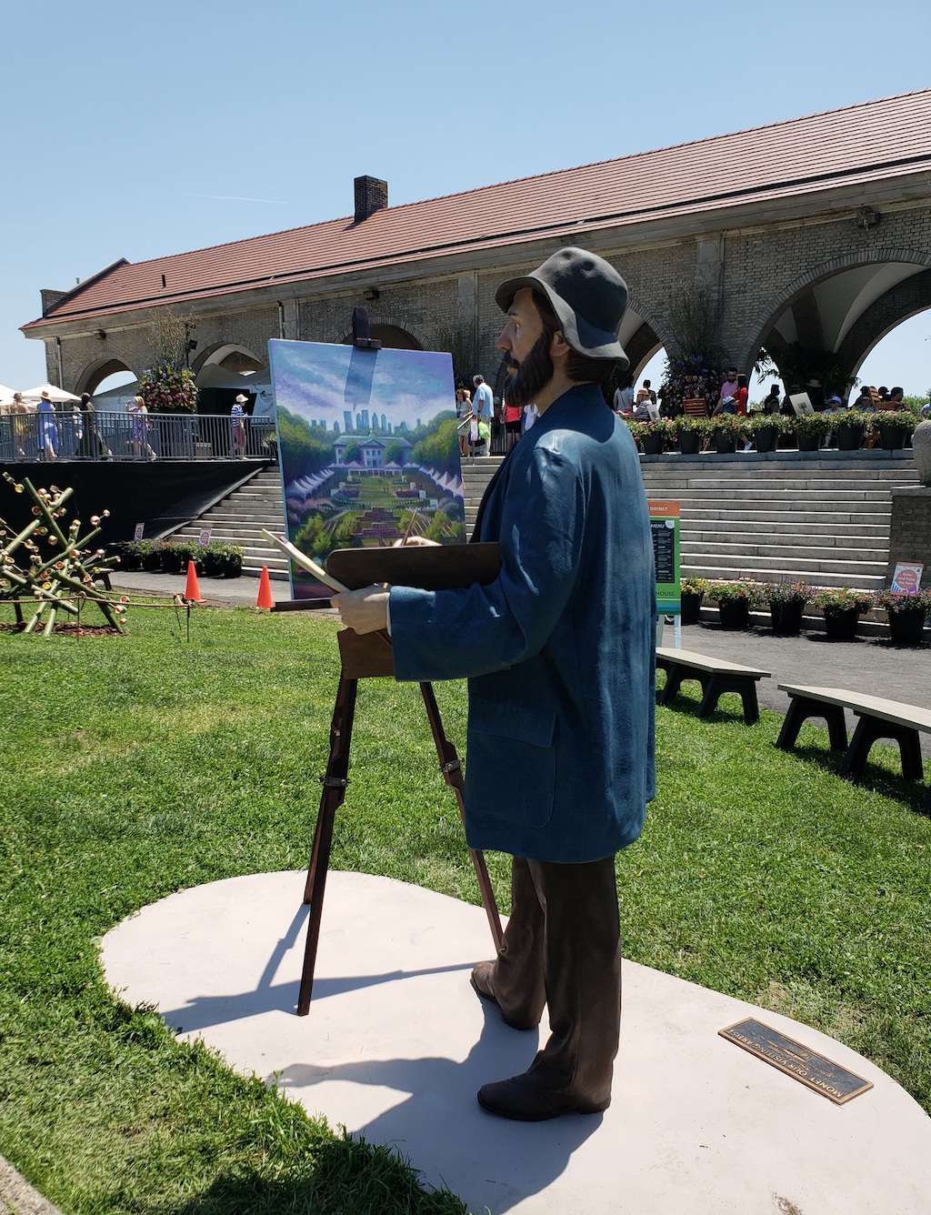 The ferocious black feathery flowers of “The Jersey Devil,” the mysterious, red and white floral “Moth Man,” the colorful Bok Building organic printer’s house, the Ikebana International bamboo sculptural display, the Dinosaurs’ plant-laden play palace fun for adult and children alike, the Monet-as-visiting-artist statue at work painting The Boathouse, the lush Hamilton Horticourt, the old-timey F.A. Bartlett Tree Expert display (and original motor transport) and the countless smaller exhibits that dotted the periphery. It was, as if we lived in a paradise for a time; one certainly not of Philadelphia, yet very much of Philadelphia. And, as amazing as all this looked during the bright light of daytime, I can’t imagine what PHS & Co. will do during June 12’s After Hours event.