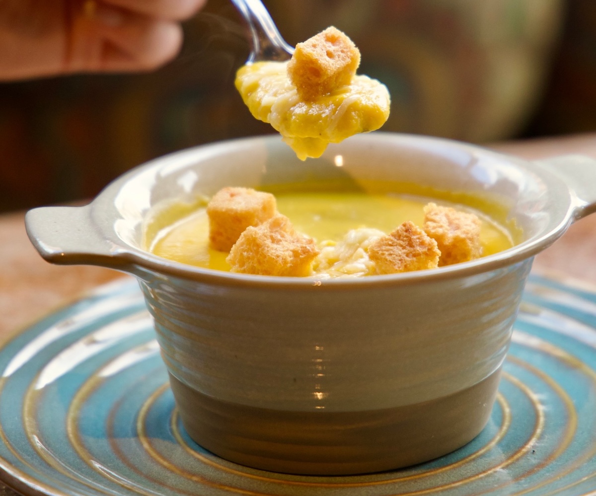 No soup roundup would be complete without a trip to Paladar Latin Kitchen, where the Creamy Corn Bisque bursts with boldness—sweet corn, warm spices, grilled shrimp, and Chihuahua cheese topped with lime crema. It’s a bowl of layered luxury that bridges comfort and flair.