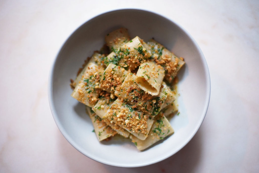 About a year ago this month, chef-owner Michael Schulson and his wife-partner Nina Tinari went into the Italian cuisine biz on a grand scale and a South Philly red gravy flare with Giuseppe & Sons. Giuseppe & Sons is great, still great, as I was there but several weeks ago. Big meatballs. Rigatoni for days. So what’s with that same pair, along with fellow chef-partner Jeff Michaud, opening an intimate pasta palace, Via Locusta, just last night? Did Giusep’ run out of spaghetti?