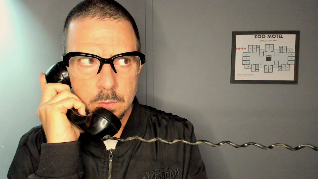 Theatre Exile’s Zoo Motel’s live cinematic theatre, as presented online and designed by Dufala, is still a different story altogether with its magic (literally, there are tricks), card games, room keys and interactivity with an online audience.